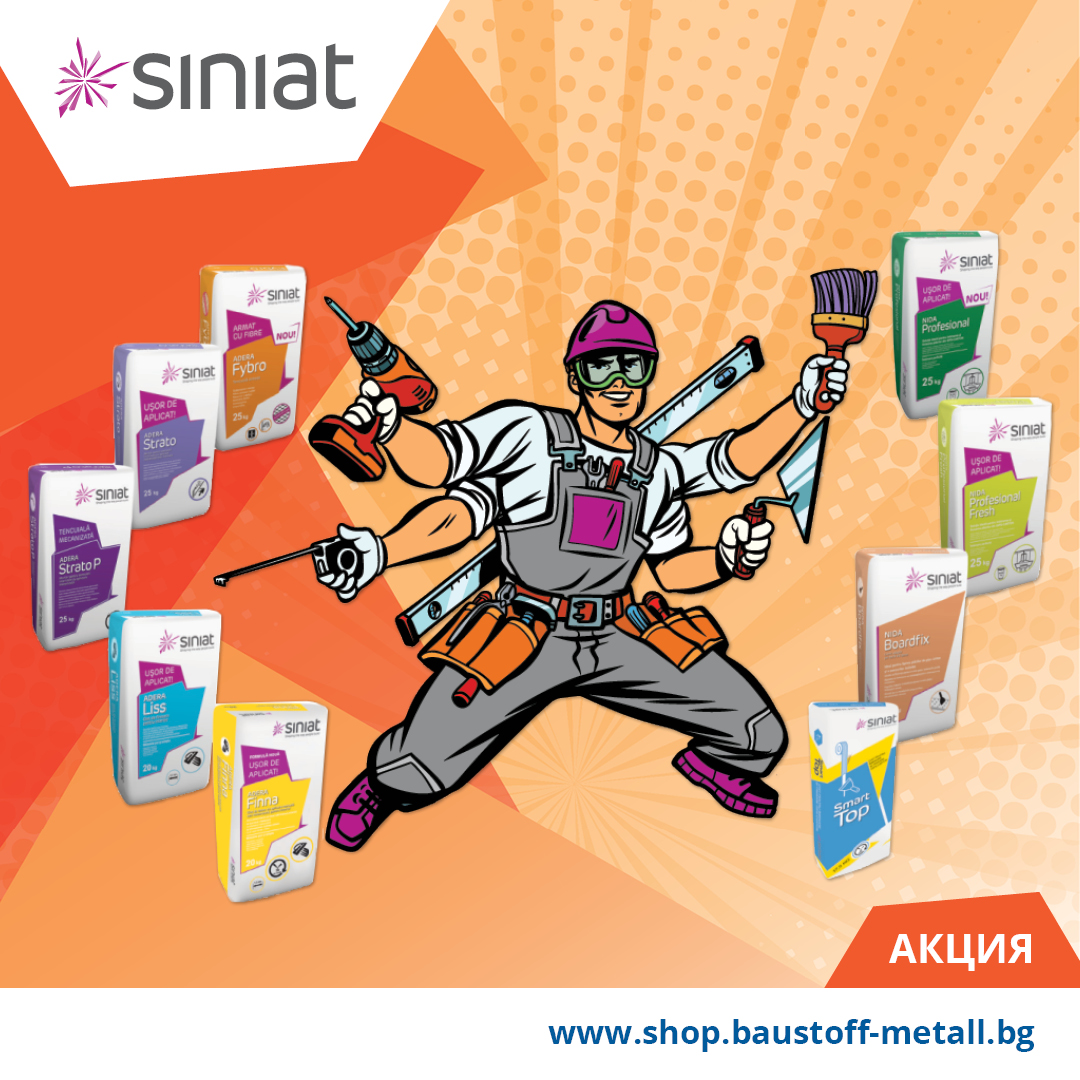 Сега при нас, при покупка на Siniat Adera Liss, Adera Finna, Nida Profesional, Nida Boardfix или Smart Top, получавате подаръци.