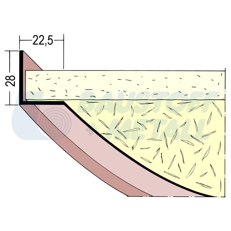 Профил растерен Протектор L дъга 03769 дължина 2.5 м, 28 x 22,5 mm, PVC ъгъл за създаване на извити връзки на тавани за кръгли колони или стени, за връзки на кръгли колони, с външен диаметър > 0,28 м може да се огъва без подрязване, за връзки изпълнени по извити стени с вътрешен диаметър > 2,45 м, произведено в Германия