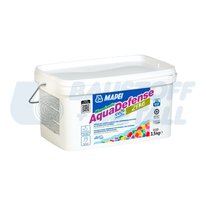 MAPELASTIC AQUADEFENSE ZERO е готова за употреба бързосъхнеща течна мембрана за хидроизолиране на влажни зони като бани, душове, перални, сауни, балкони и тераси преди полагането на облицовъчен материал.