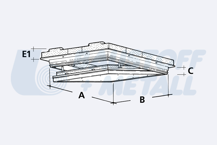 Ревизионна клапа RUG Aluprotect F30 300x300 дебелина 25, клас на пожароустойчивост F / EI30 отгоре, за монтаж в окачени тавани с 25 мм пожароустойчив гипскартон, със скрити ключалки, произведено в Германия