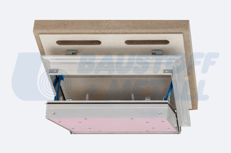RUG Alumatic F/EI90 е с вграден 2х20мм гипскартон с периферно гумено уплътнение и вложка от гипскартон, със скрити щракващи ключалки и предпазни фиксиращи рамена