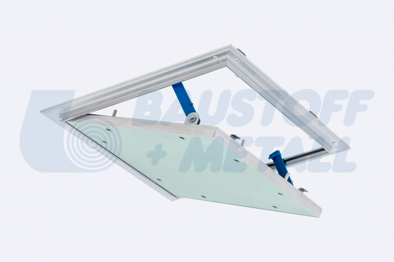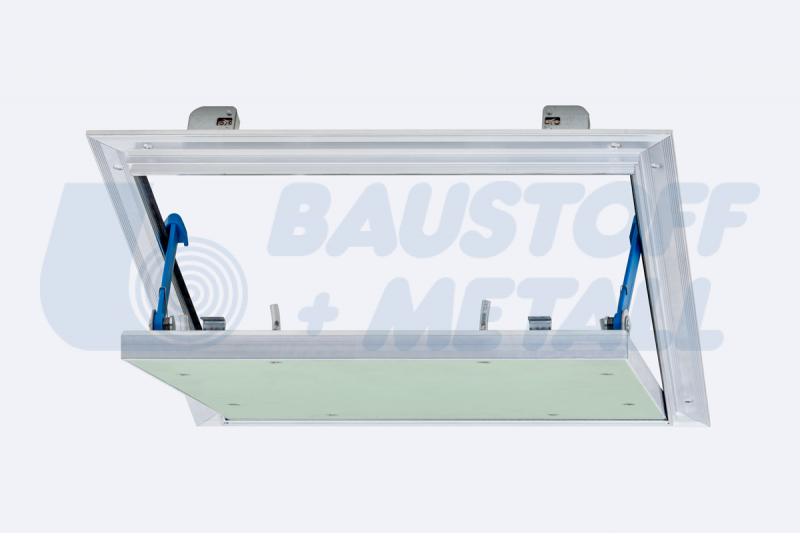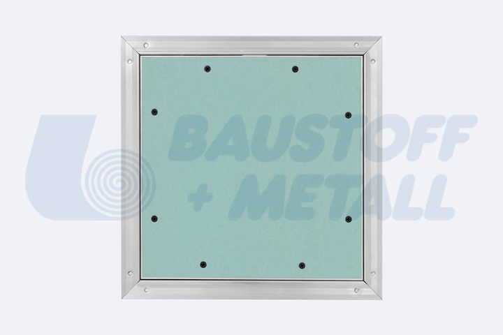 Ревизионна клапа RUG Alumatic размери 300x300 дебелина 12,5 мм, с висококачествено гумено уплътнение, подходящ за мокри помещения, за таван и стена, със заключващ механизъм и лесно демонтиращ се капак с вграден гипскартон H2 / GKBI 12.5 мм, произведено в Германия