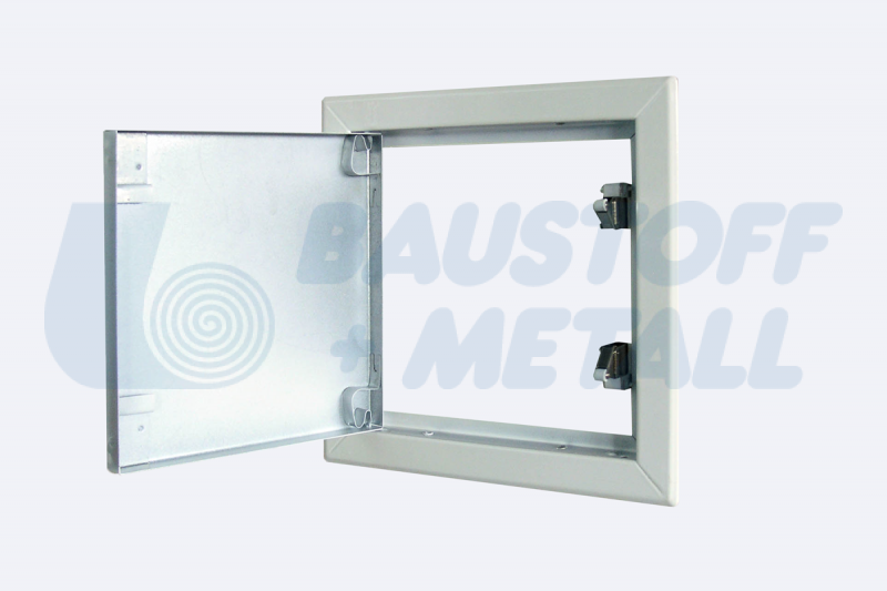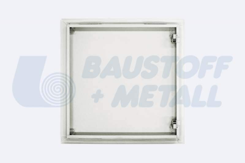 Ревизионна клапа RUG Softline Comfort размери 200x200 дебелина 20 мм ревизия с бяла устойчива прахово-боядисана повърхноств в RAL 9016, за монтаж на таван и стена, със скрита ключалка, крилото на вратите се отделя, може да се монтира отляво или отдясно, с крепежни стенни анкери за безопасна инсталация, произведена в Германия