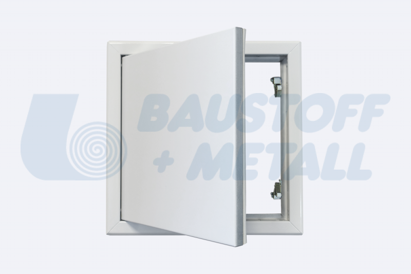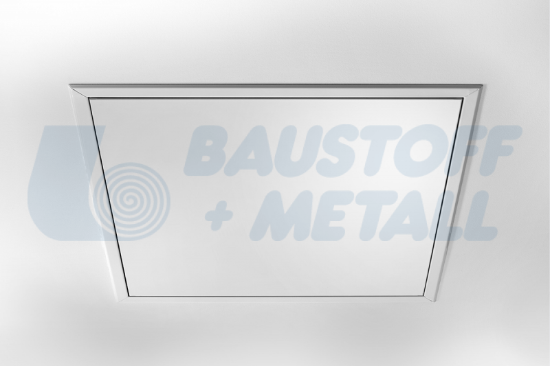 Ревизионна клапа RUG Softline Comfort размери 300x300 дебелина 20 мм с бяла устойчива прахово-боядисана повърхноств в RAL 9016, за монтаж на таван и стена, със скрита ключалка, крилото на вратите се отделя, може да се монтира отляво или отдясно, с крепежни стенни анкери за безопасна инсталация, произведена в Германия