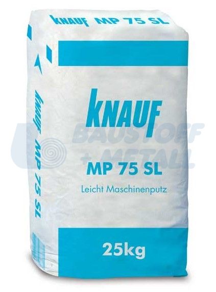 Гипсова мазилка Knauf МP 75 SL Супер Лайхт, торба 25 кг, за машинно нанасяне, супер лека, предварително фабрично заготвена суха смес на основа на строителен гипс със специални леки добавки за получаване на гладки повърхности на стени и тавани.