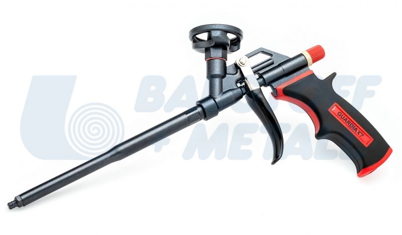 Пистолет за пяна Irion Гуардия X7 с напълно не залепващо PTFE покритие, оптимизиран и подсилен адаптер за аерозола, прецизен регулиращ винт със стоп функция и гумирана ръкохватка и спусък