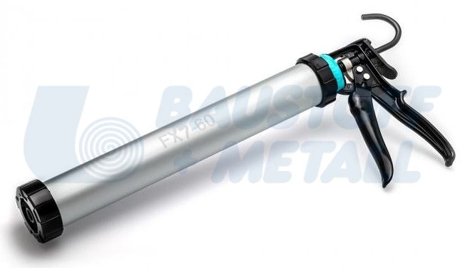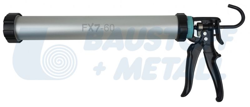Про пистолет FX7-60 за картуши и опаковки до 600 мл. с ротационна цев, кука за окачване, гумирани дръжка и спусък, многократно блокира обратния натиск, двойно плъзгащ механизъм за плавно нанасяне, за материали с висок вискозитет