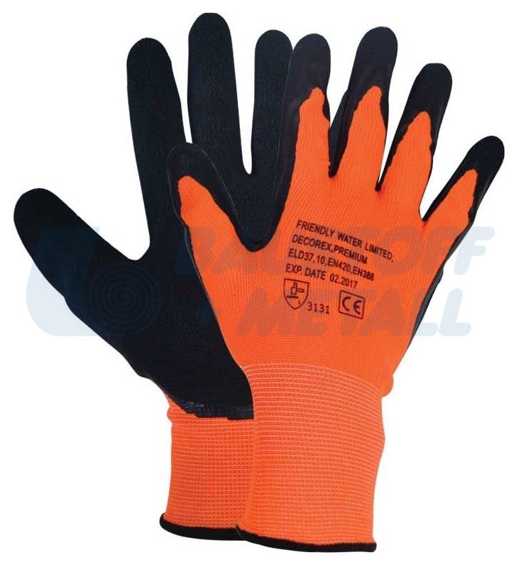 Ръкавици дишащи, топени в латексова пяна предназначени за зъщита от замърсени повърхности с нетоксични вещества, вредности и опасни комбинации от тях при монтажна и строителна дейност