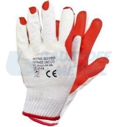 Ръкавици изработени от плетено ластично, безшевно трико с противохлъзгащо покритие, ластичен маншет и дишащ гръб, топени в латекс, размер: 10"