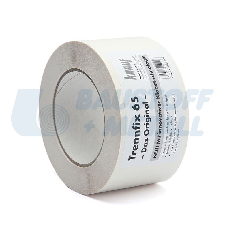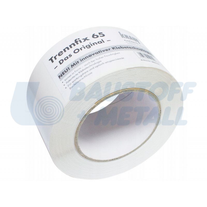 Лента разделителна Knauf Trenn Fix Кнауф Трен Фикс, самозалепваща ивица 10 mm от общата широчина от 65 мм, предпазва от пукнатини на фугите между сухостроителните системи и масивните части на сградата, като шпакловъчният материал не се свързва с масивната част, дължина 50 м.