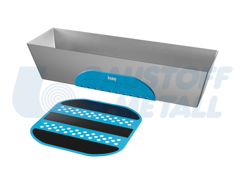 Ваничка за готови шпакловъчни смеси Кнауф от неръждаема стомана с магнитна гумена подложка за по-добър и сигурен захват при работа