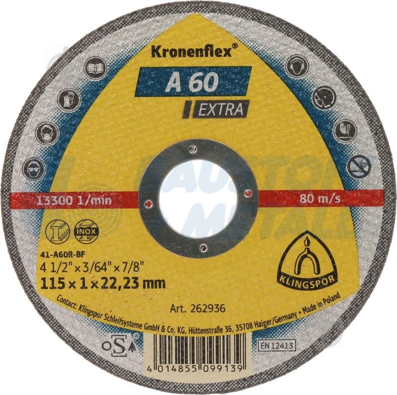 Klingspor A60 Extra 115x1.0x22.23 мм рязане на стомана, 1 брой