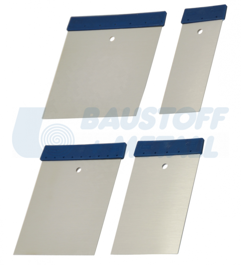 Тялото на шпаклата е изработено от неръждаема стомана. Комплектът включва шпакли с размери 50 мм, 75 мм, 100 мм и 120 мм.
