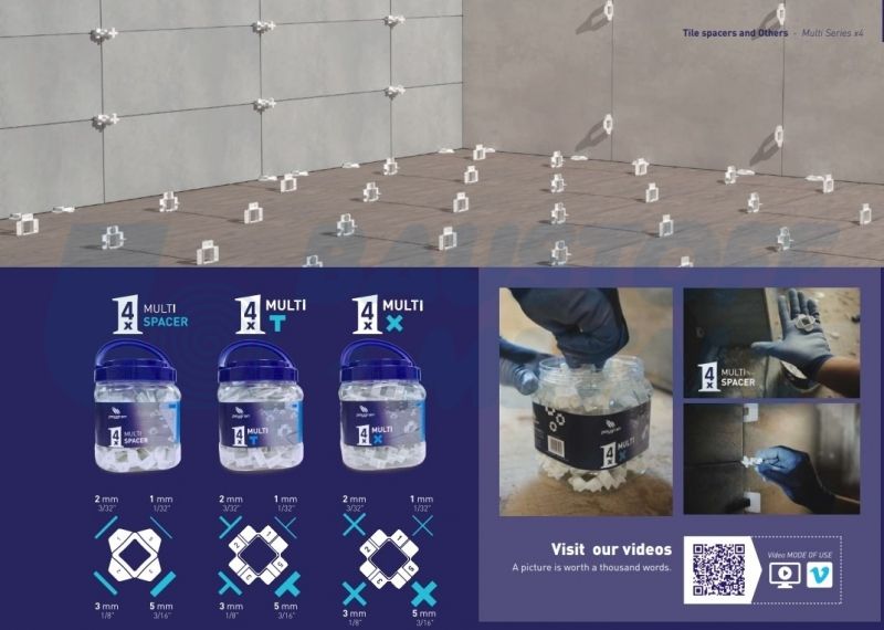 Дистанционерът е специално изработен, така че да може един и същи комплект да се използва за фуги 1, 2, 3 и 5 мм.