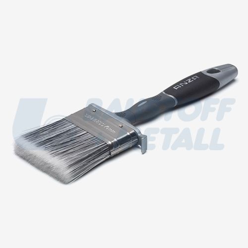 Подходяща за боядисване на врати, дограми, стени и тавани. Синтетичните нишки са подходящи за всякакъв вид бои. С голям капацитет за поемане на боя и голяма покривност, което ви пести време. Главата има тампон против стичане и неръждаема стомана. Равномерно и гладко нанасяне, без следи. Удобна за работа във всяка позиция с удобен захват. Патентована Anza закачалка, за да не се чудите къде да оставите четката.