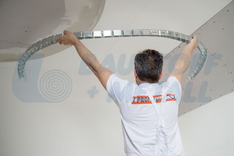 Гъвкав периферен профил UD 30 мм за изграждане на вълнообразни елементи и фигури по стени и тавани в комбинация с гъвкави CD профили Concav и Convex.