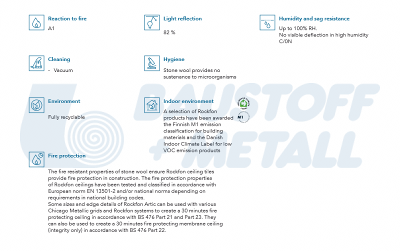 Пано Рокфон Artic E24 падащ борд за конструкция Т24, размер 600/600 мм, дебелина 15 мм, негоримо с клас на реакция на огън А1, влагоустойчиво RH 100%, коефициент на звукопоглъщане αw 0,90, кашон 5.76 м²