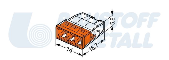 Клема за твърд проводник WAGO COMPACT PUSH WIRE 3 x 0.5 - 2.5 мм² цвят оранжев, пакет 10 бр.