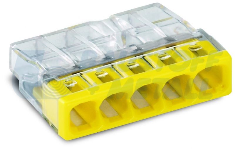 Клема за твърд проводник WAGO 5 x 0.5 - 2.5 мм² жълта, пакет 10 бр.