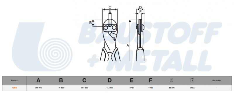 Клещи резачки силови 205 мм BAHCO 1520 D със странични режещи челюсти, изработени от висококачествена легирана закалена стомана