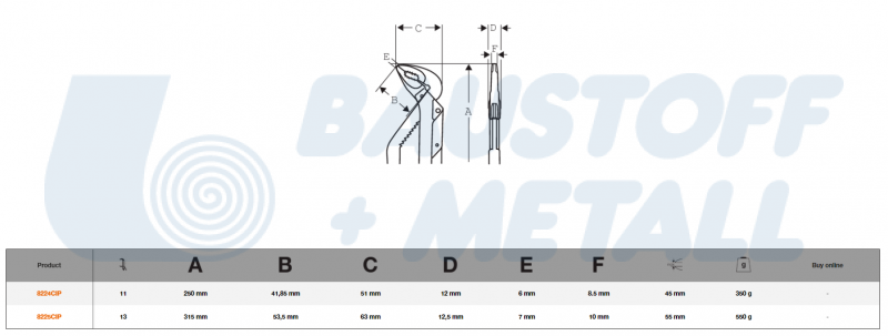 Водопроводни клещи хромирани тип "Гарга" с бутон 250 мм BAHCO 8224CIP хромирани, изработени от висококачествена легирана закалена стомана
