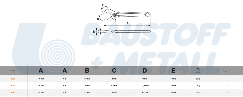 Раздвижен гаечен ключ тип френски до 27mm BAHCO 8071 изработен от високо легирана стомана
