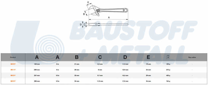 Раздвижен гаечен ключ тип френски до 21 мм обръщаща се челюст BAHCO 9070P изработен от високо легирана стомана