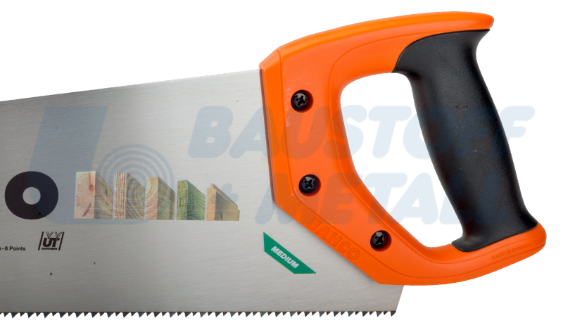 Ръчен трион закалени зъби 400 мм BAHCO NP-16-U7/8-HP за рязане на всички видове дървен материал, ламинат и ПДЧ, с лазерно закалени зъби, изработен от висококачествена бързорежеща стомана за висока степен на гъвкавост и устойчивост на износване. Изключително тънка работна част с малък чапраз за максимално гладък срез и оптимална мощност с по-малки усилия