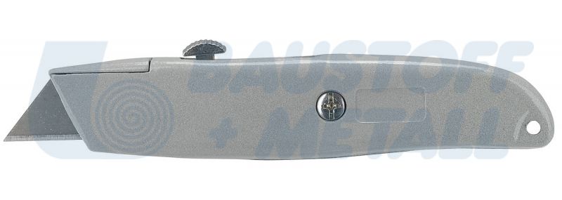 Макетен нож, с метален корпус и прибиращосе острие-трапецовидно.