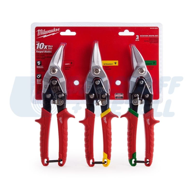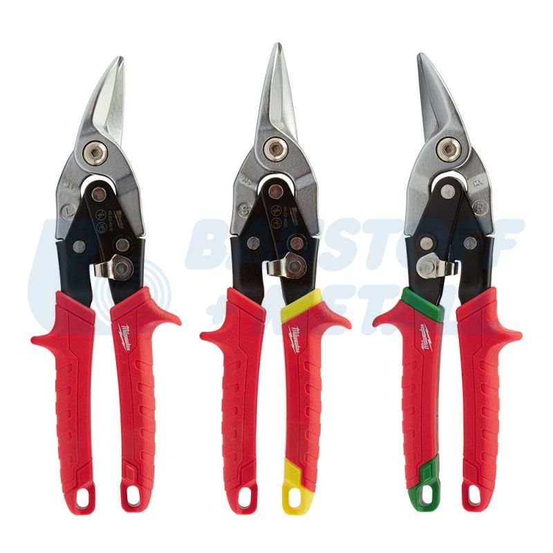 Комплект 3 ножици за ламарина Milwaukee - дясна, лява и права
