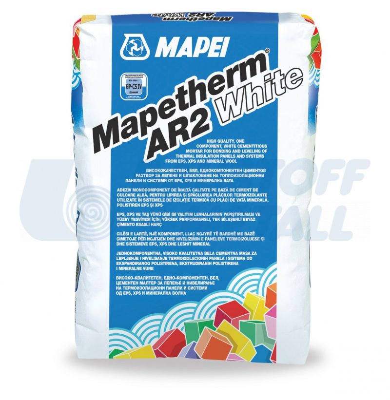 Mapetherm AR2 White се използва за лепене и шпакловане във външни и вътрешни условия, при полагане на топлоизолационни плоскости (от експандирани екструдиран пенополистирол EPS и XPS, минерална вата, и др.) върху циментови и варо-циментови мазилки, бетон, керамични или бетонови ту хли.