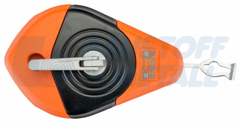 Конец за маркиране + синя креда BAHCO CL-1441-SET с лек и здрав магнезиев метален корпус, 5 скорости на пренавиване, с щипка за колан, с тежест - може да се използва като отвес