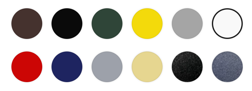 10 стандартни нюанса, антично черен и антично сив.