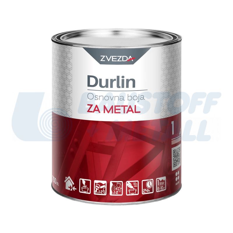 Грунд за метал ZVEZDA DURLIN, осигурява дълготрайна защита от корозия, лесно се нанася и се разлива добре, антикорозионно основно покритие за защита на стоманени конструкции и метални повърхности в интериора и екстериора, цвят червенокафяв, опаковка 0.75 л