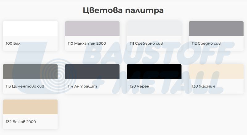 Цветове: Прозрачен, бял 100, сив 110, сив 112, сив 114, черен 120, бежов 130 и бежов 132 (виж картата с цветове „Цветни фугиращи смеси на MAPEI”).