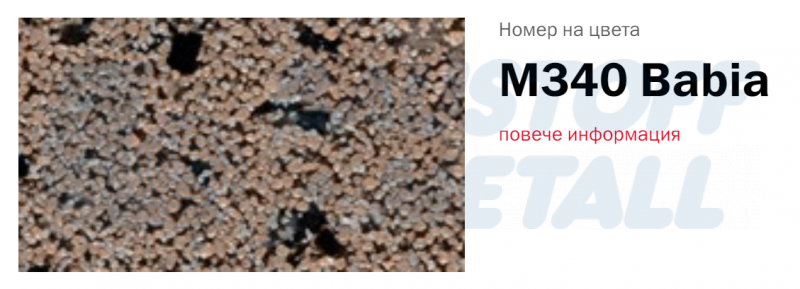 Всички предлагани цветови комбинации от MosaikTop 301 до MosaikTop 336 можете да изберете от снимката към продукта. При поръчка е необходимо да посочите избраното цветово съчетание.