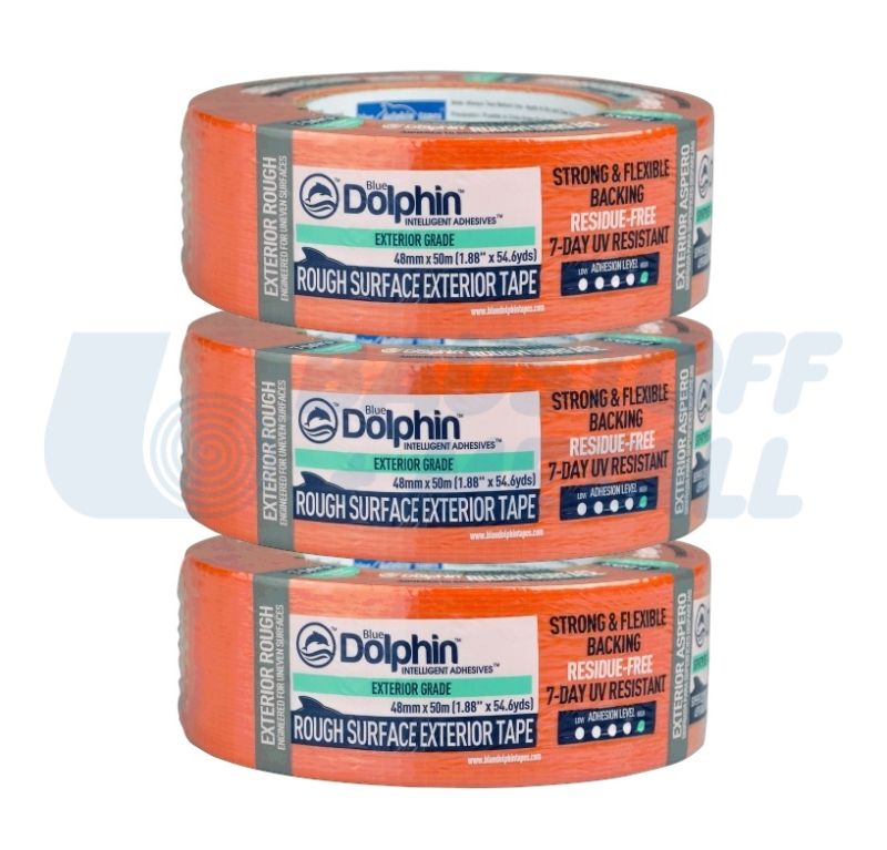 Професионално тиксо за маскиране груби повърхности тиксо за външно приложение BlueDolphin, широчина 48 мм, дължина 50 м. промо пакет 2+1 бр. подарък, самозалепваща лента, специално проектирана за груби повърхности на външни условия, подходяща е за тухли, цимент, мазилка и други, притежава UV и влаго защита в продължение на 7 дни и не оставя следи от лепило след премахване.