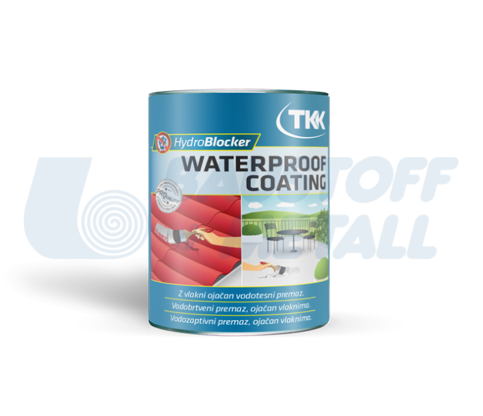 HydroBlocker Waterproof Coating е водоуплътнително покритие, което се ползва за просто отстраняване на течове и попълване на пукнатини на различни повърхности, за тераси, балкони, огради, покриви и ръбове около комини. Oсигурява отлична адхезия към всички повърхности, дори и към мокри и мазни, както са: алуминий, цинк, oлово, стъклo, камък, aсфалт, битум, твърд PVC, керамида, дървo и т.н.. Много е еластичен и може да се боядисва. Подсилване с влакнини предоставя възможност за попълване на пукнатини и дупки със широчина дo 5 mm. Устойчив e на дъжд,сняг и високи температури.