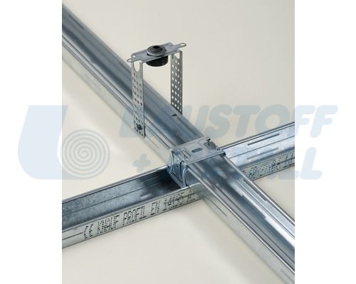 Директен окачвач акустичен с гумен демпфер Кнауф дължина 120 мм, с товароносимост 0,40 kN за закрепване на конструкция с CD профили на окачени тавани и стенни облицовки.