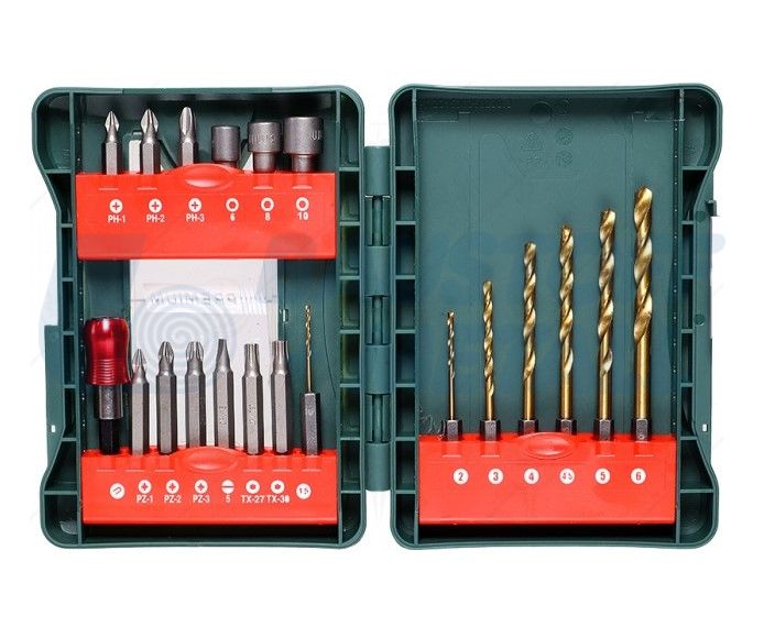 Накрайници и свредла Premium 20 части, 7 броя бургии за метал 1/4, 3 броя накрайници за болт, 9 броя накрайници 50мм, 1 брой магнитен удължител