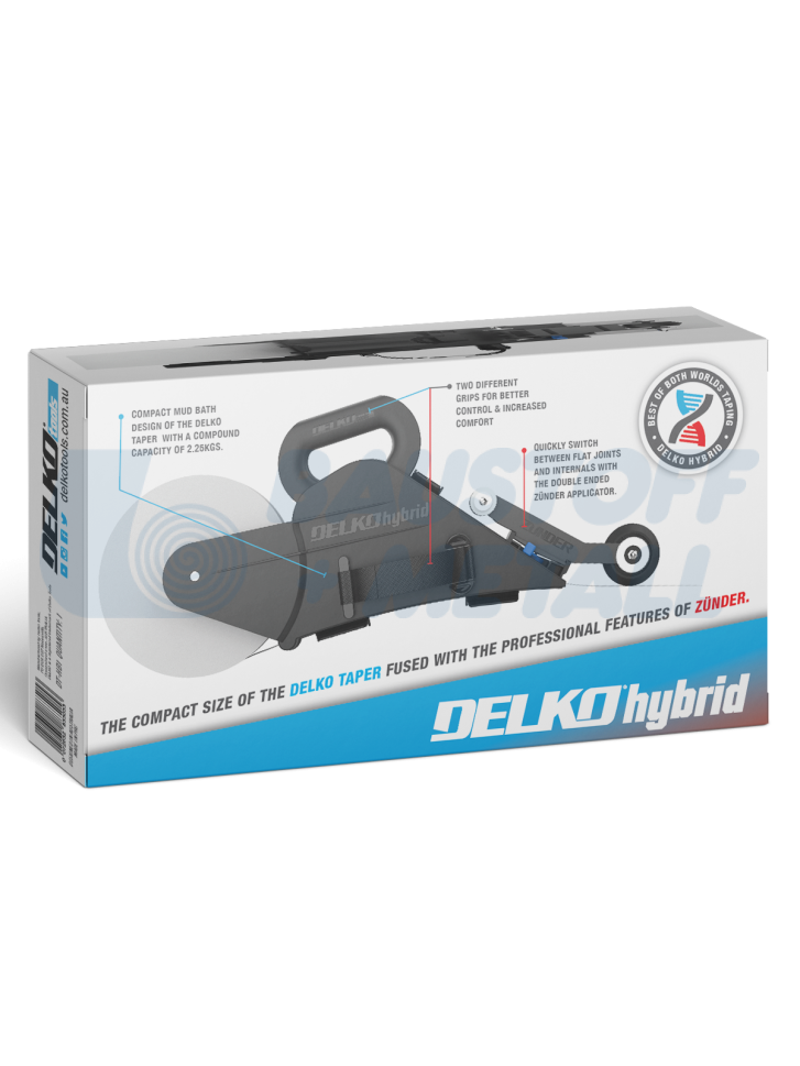 Банджо за фугиране на гипскартон Delko Hibrid DTAHZ съчетава компактния размер на Delko Taper с професионалните характеристики на ZÜNDER®, с двойно завършващият накрайник Delko, който позволява едновременно полагане на шпакловка и хартиена или гласфазерна лента върху равни снадки и вътрешни ъгли за минути, което спестява време за настройки на накрайника, като може да се използват ролки с лента за фуги с дължина до 150 метра - и не само хартия, опитайте Delko Hybrid с други ленти като FibaFuse или KURTкапацитет от 2,25 кг.