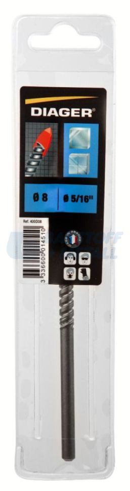 Свредло за стъкло и керамика Ø6 х40х80 с цилиндрична опашка Diager CERATILE с карбиден връх с 4 странно заточване, с медно покритие за по-добра топлинна устойчивост, с корпус от закалена стомана, без необходимост от охлаждане, с цилиндрична опашка, произведено във Франция