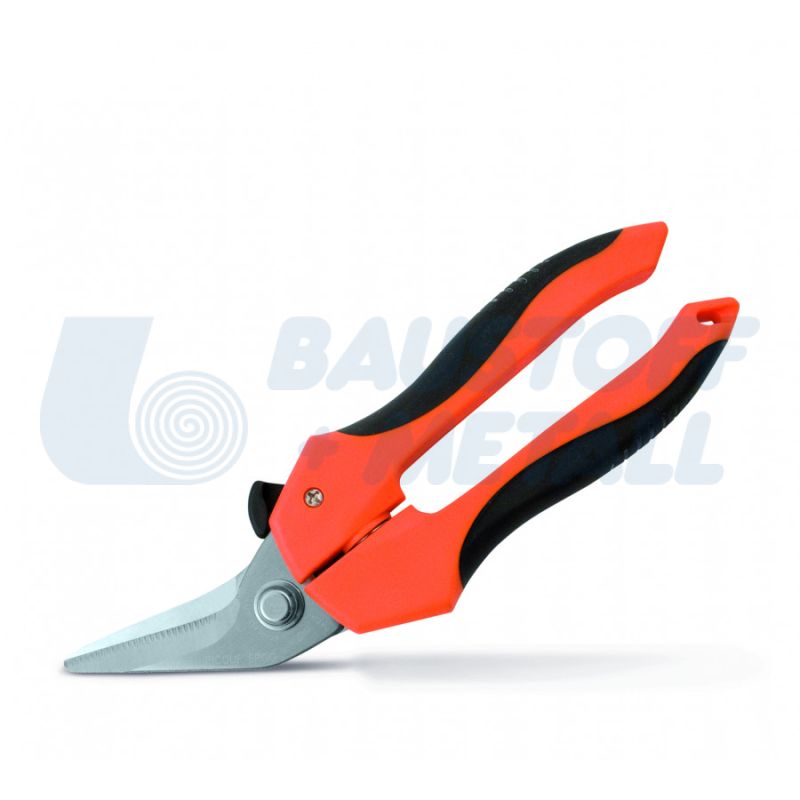 Ножица с наклонени остриета многофункционална EDMA PLURICOUP' ERGO, лека и удобна, с 42 mm полирани назъбени остриета от неръждаема стомана, ергономични дръжки и лесно за затваряне резе и с ъглови остриета за оптимален комфорт при рязане, производител EDMA Франция