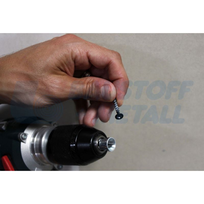Ограничител за дълбочина за идеално завинтване в гипсокартонените плоскости без пробиване през тях.