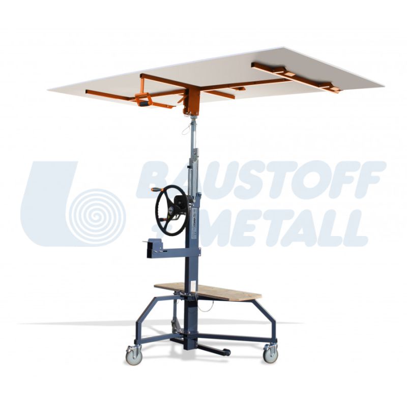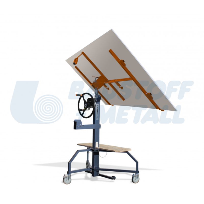 Неговата система на зъбна рейка и зъбно колело позволява повдигане на гипсокартонени плоскости с по-малко усилие в сравнение с други повдигачи на панели.