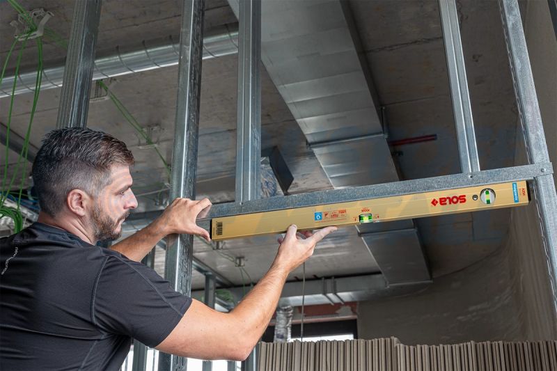Магнитният нивелир е основен инструмент за монтаж на гипскартон, тъй като осигурява прецизното подравняване на профилите на стената и тавана. Мощната магнитна сила означава, че нивелирът се захваща здраво за профила, дори и да има вибрации. Нивото може също така да бъде премахнато отново от профила също толкова бързо и лесно, всичко това без големи усилия.