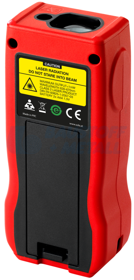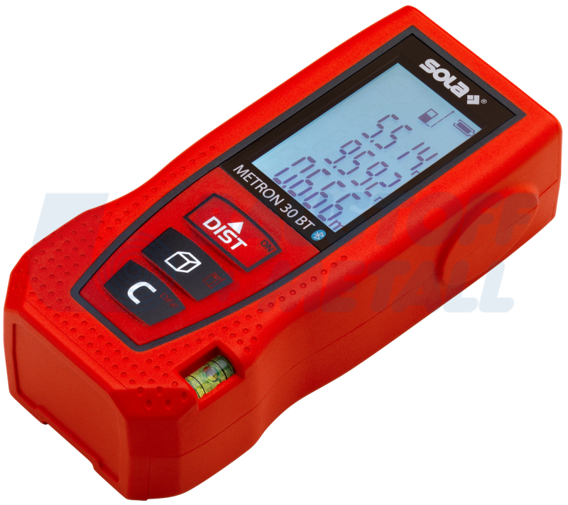 Лазерна ролетка SOLA METRON 30 BT, от 0,05 до 30 метра обхват, толеранс на измерване ±1,50 мм с bluetooth интерфейс за приложението SOLA Measures, функцията за споделяне позволява бързо изпращане на резултатите от измерването, с мек захват и ергономичен дизайн и с 3-редов дисплей с подсветка, компактен, лек, удобен, приложения: измерване на дължина, измерване на площ, измерване на обема, мин./макс. измерване, непрекъснато измерване, индиректно 2-точково измерване, захранване 2 x 1.5 V (AAA) батерии, производител SOLA-Австрия