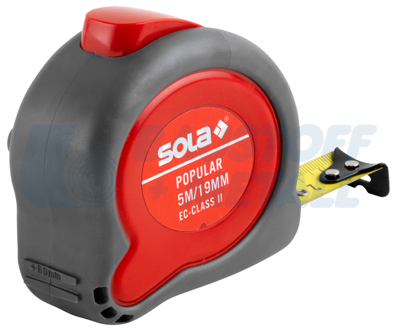 Ролетка SOLA Popular PP 3 дължина 3 метра, широчина на лентата 13 мм, с устойчив на счупване пластмасов корпус от 2 части, скала в мм, с лента от стомана - матово лакирана жълта, с щипка за колан, сигурно боравене благодарение на неплъзгаща се повърхност и ергономичен дизайн, с точна лентова спирачка от 2 части за прецизно вътрешно измерване, амортисьорна система за нежно спиране на лентата, дълготрайна прецизност и защита срещу повреда благодарение на подсилената начална секция на лентата, здрава ABS скоба за колан за сигурно задържане, производител SOLA-Австрия