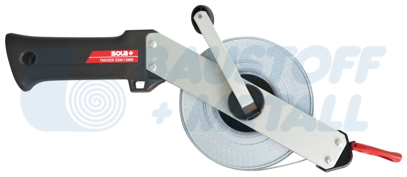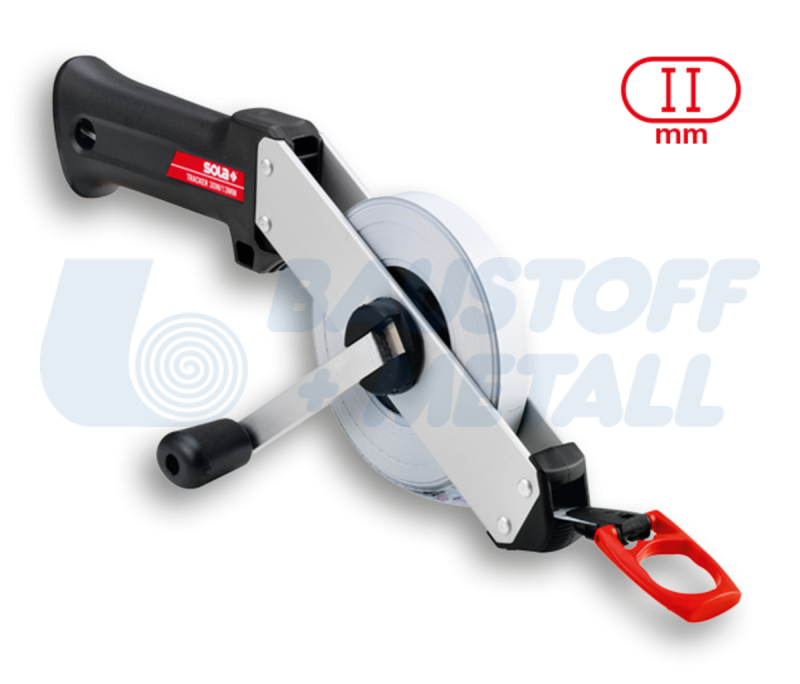 Ролетка на ролка SOLA TRACKER R TR 30, дължина 30 метра, с алуминиев корпус и издръжлива стоманена лента с фосфатно покритие против ръжда, за прецизна работа без отблясъци и лесно отчитане на измерванията благодарение на покритие без отражение, с многофункционална крайна кука за сигурно закрепване към тръби, пирони или винтове, с лека и стабилна алуминиева рамка, с ергономично оформена дръжка, производител SOLA-Австрия