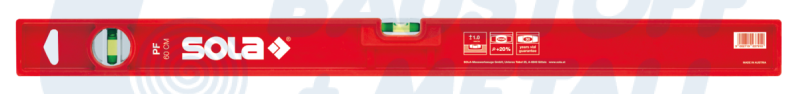 Нивелир пластмасов SOLA PF 50, дължина 50 см, лек от ABS пластмаса, с точност на измерване 1 мм/м (0,057°), устойчиви на счупване либели от акрилно стъкло с увеличителна леща (+20%), за хоризонтално и вертикално измерване, размери: 53 х 24 х 500 мм, за по-добро, по-бързо и по-точно отчитане чрез патентованите либели SOLA FOCUS, с подобрена четливост при слаба светлина благодарение на оптимизираната светеща подложка SOLA, SOLA-Австрия